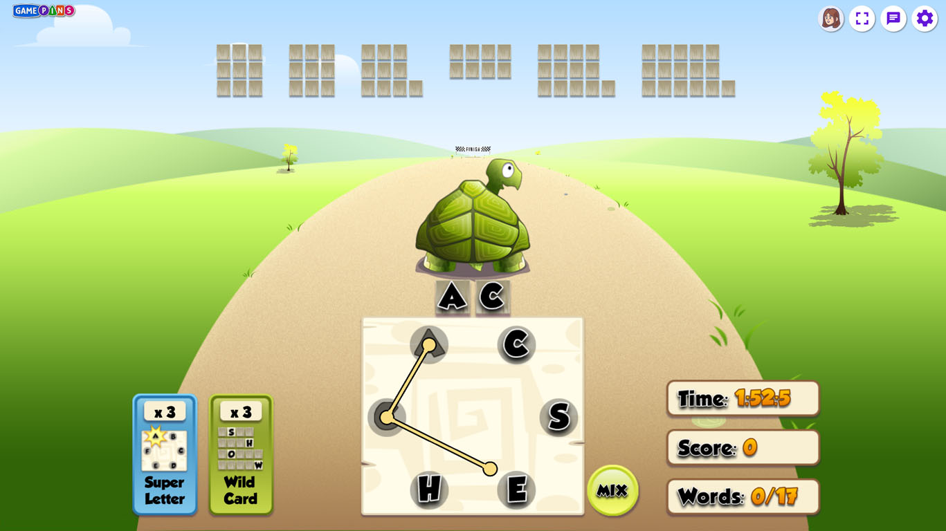 - Solve all of the words to cross the Finish line! If you run out of time, you can add another 30 seconds with the Add Time power-up to keep trying!