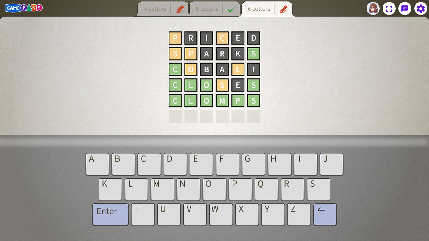- Test your instincts and use all the logic you can muster to guess each of the 3 available words each day! Select the 4-letter, 5-letter, or 6-letter word tab to get started.