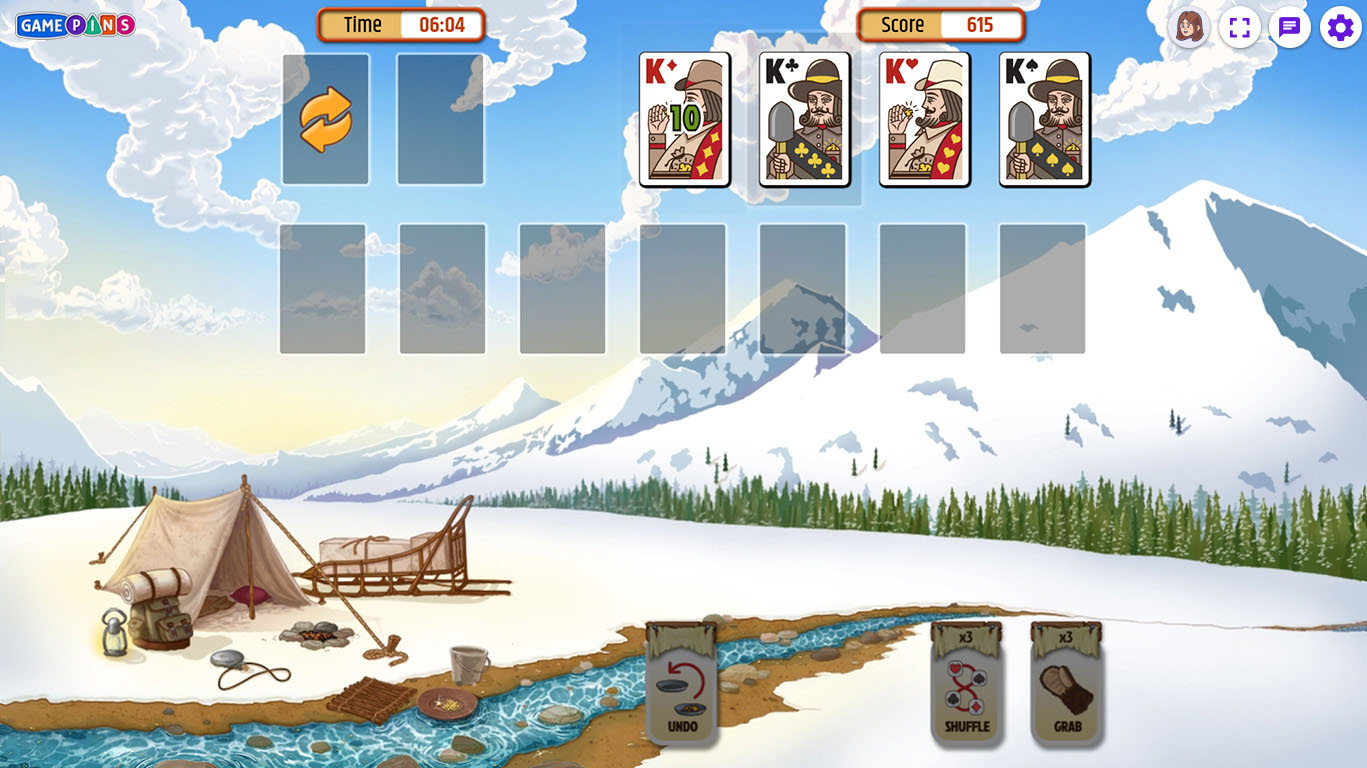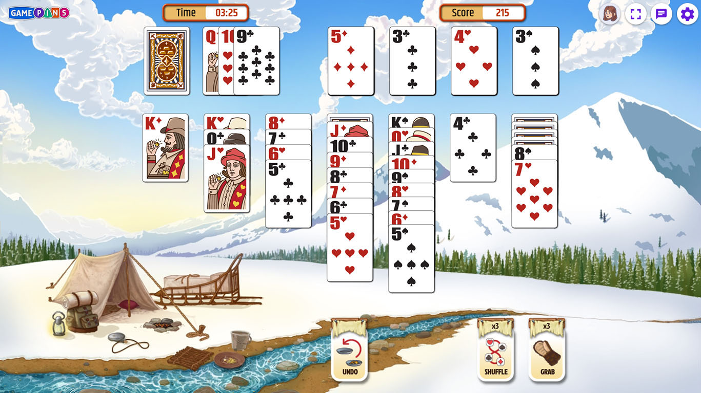 - Out of moves or feeling stuck? Use power-ups like the Grab to pull the next card onto any Foundation pile, or the Shuffle to re-order the Draw pile.